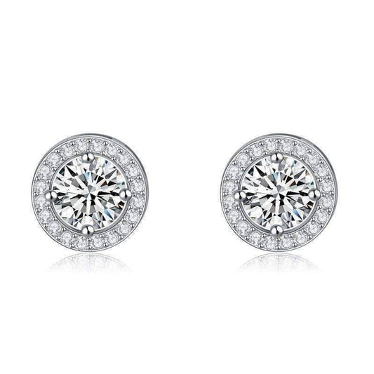 Perfect Halo 18K White, Yellow, Rose Gold Plated 3.32 Tcw Round Cut Simulated Diamond CZ Stud Earrings For Women, for Any Occasion.