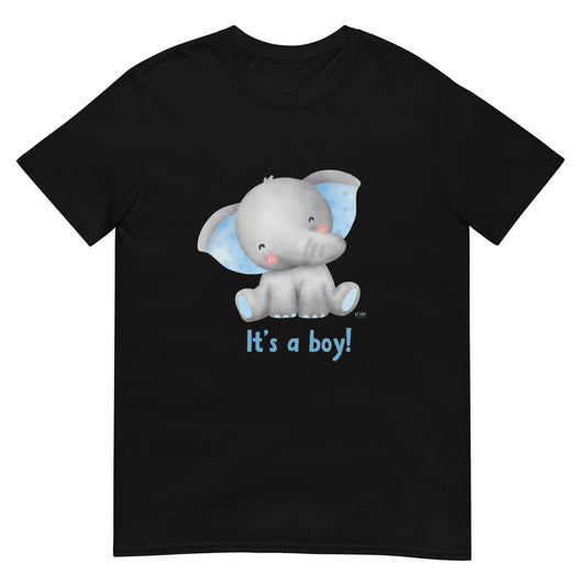 Short-Sleeve Women Soft T-Shirt It's A Boy Baby Elephant Design by IOBI Original Apparel