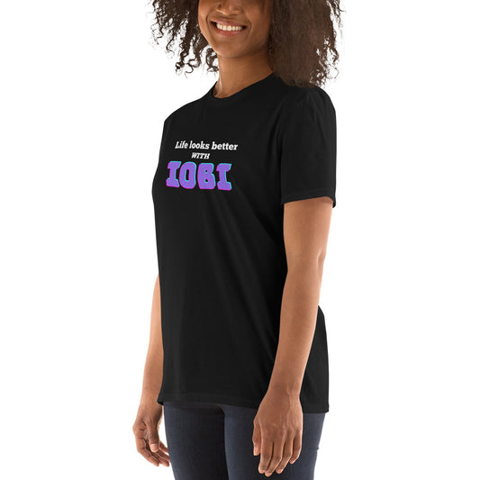 Short-Sleeve Women Soft T-Shirt Life Looks Better With IOBI Design by IOBI Original Apparel