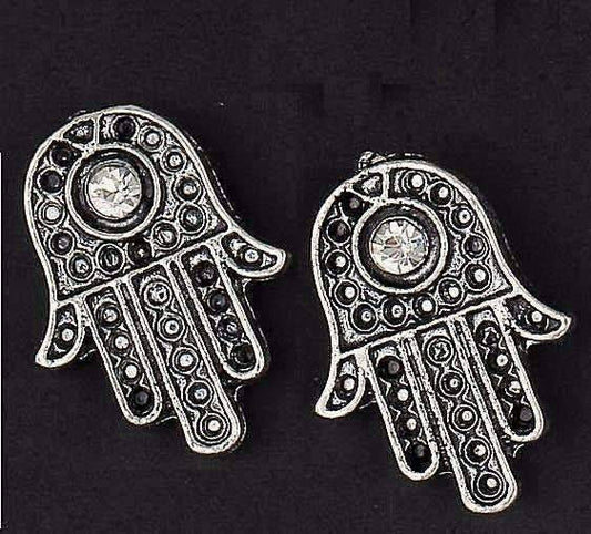 Silvery Sparkle Hamsa Stud Earrings