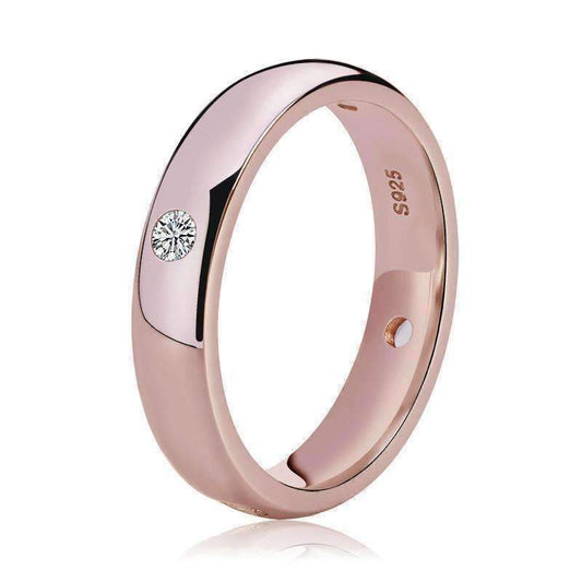 Simply Elegant Four Stone Flush Mount CZ Band Ring in Platinum or Rose Gold Plating - Ring