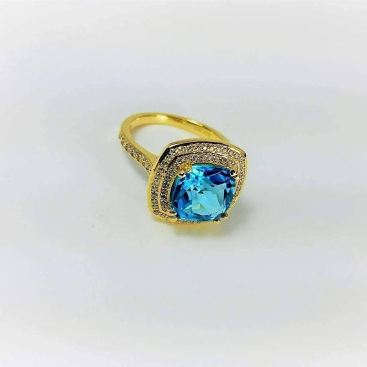Sky Blue Topaz 5.87Ct Cushion Cut 18K Gold plated over Solid Sterling Silver IOBI Precious Gems Ring