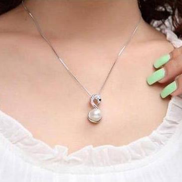 White Swan Pearl Bead Necklace for Women