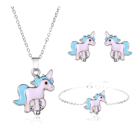 Unicorn Jewelry For Girls 4PC Set Of Necklace, Bracelet And Earrings