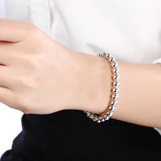 Classic 6mm Beads Silver Bracelet for Women all-day wear Perfect for any occasion