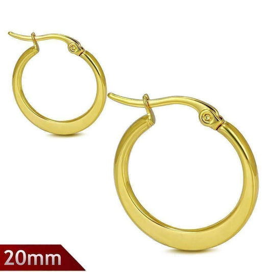 Highly Polished Gold Plated Stainless Steel 316 Hoop Earrings Available in Two Sizes