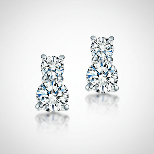 Elite Round Three-Prong Sterling Silver Stud Earrings with OB Simulated Diamonds – Bridal, Engagement & Anniversary