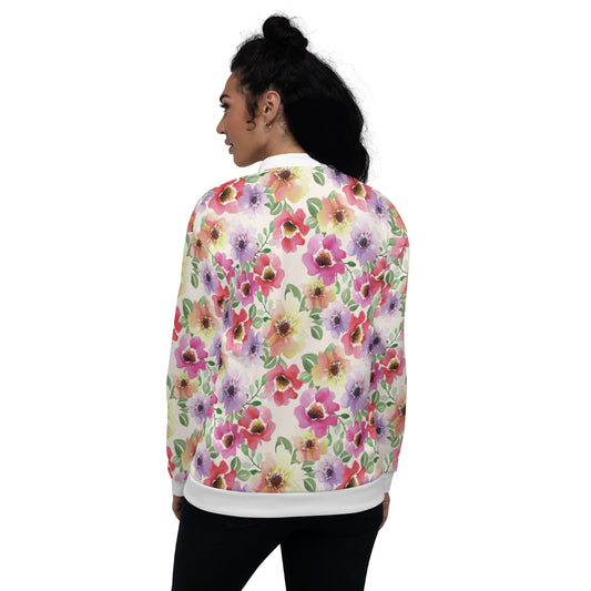 Women Bomber Jacket With Pockets Zipper Poppy Bloom Flowers Design by IOBI Original Apparel