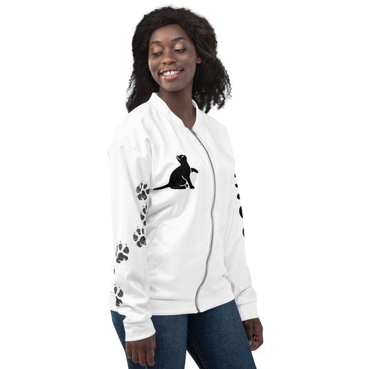 Women Bomber Jacket With Pockets Zipper Premium Quality Cat Silhouette Meow Design by IOBI Original Apparel