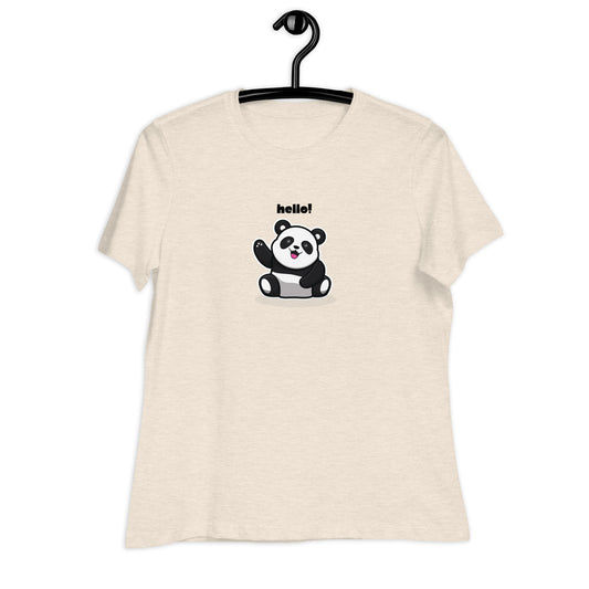 Women's Relaxed Soft & Smooth Premium Quality T-Shirt Panda Hello Design by IOBI Original Apparel