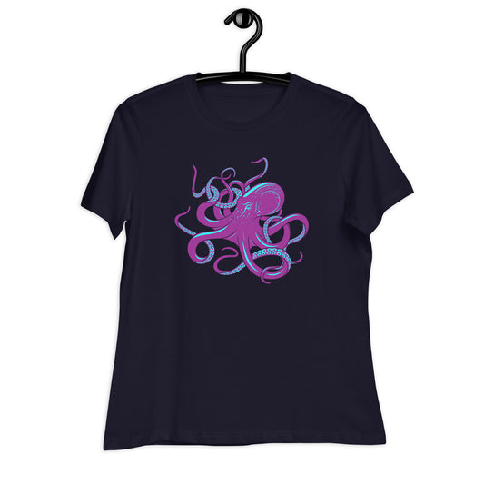 Women's Relaxed Soft & Smooth Premium Quality T-Shirt Cool Octopus Design by IOBI Original Apparel