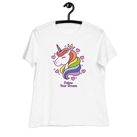 Women's Relaxed Soft & Smooth Premium Quality T-Shirt Follow Your Dream Unicorn Design by IOBI Original Apparel