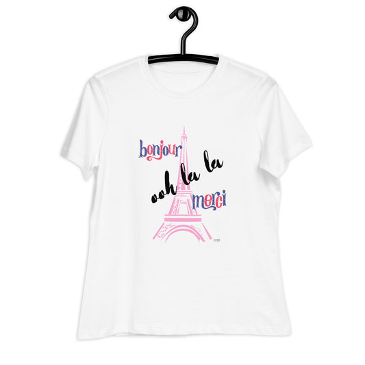Women's Relaxed Soft & Smooth Premium Quality T-Shirt Eiffel Tower France Design by IOBI Original Apparel