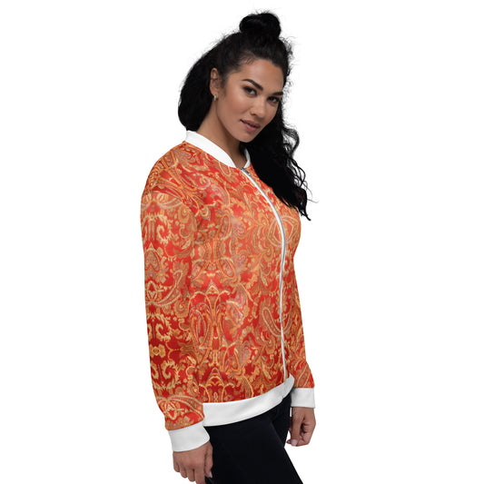 Women Bomber Jacket With Pockets Zipper Premium Quality Warm Paisley Design by IOBI Original Apparel