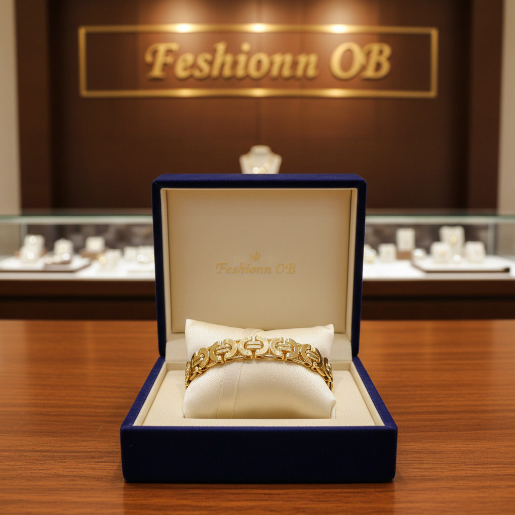 An intriguing take on the Byzantine link chain, this striking bracelet is composed of symmetrical bars and curves that repeat along the chain adding interest and texture. A thin profile makes it comfortable and allows for graceful movement. Stainless steel is hypo-allergenic, durable and will not tarnish.