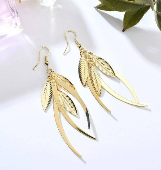 These beautiful earrings feature a cluster of feathers that sway with movement creating interest and shine. Long and luxurious, yet lightweight for comfort. Available in silver or gold color.