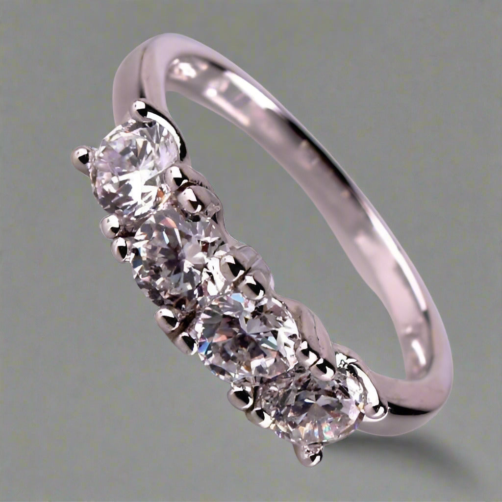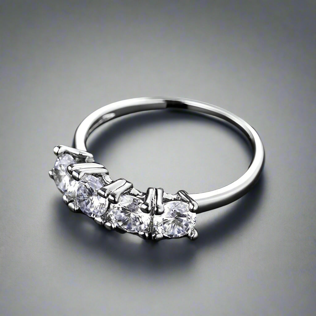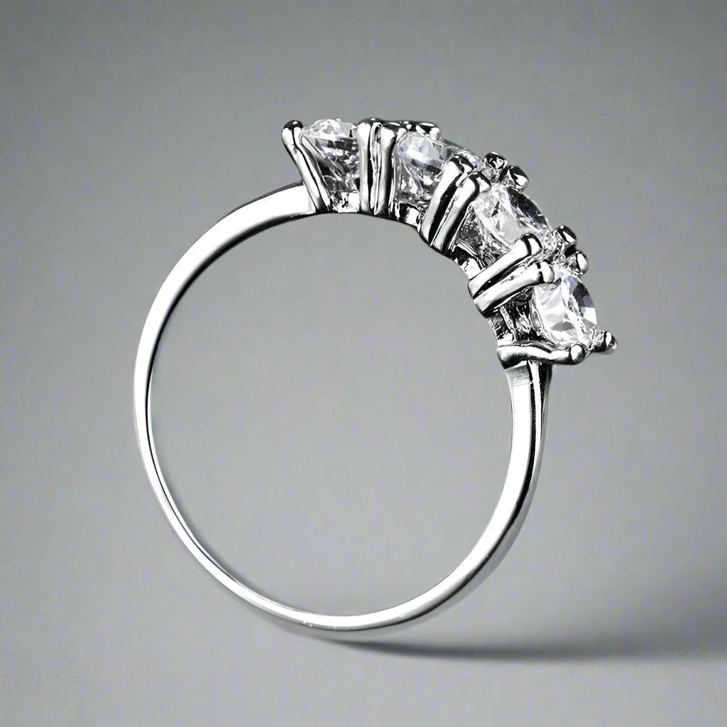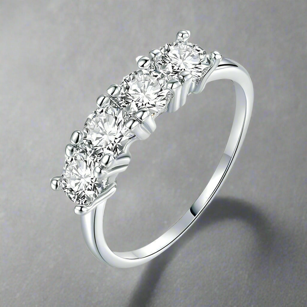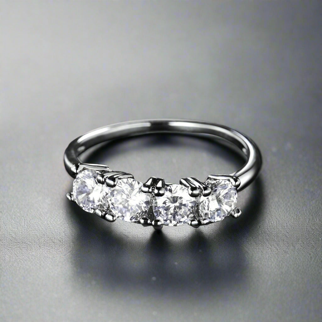 The classic anniversary ring, the perfect way to celebrate anniversaries small or large. Let these four brilliant CZ stones show your devotion. Each CZ is 4mm- 1 carat total weight. So versatile, pairs beautiful with any solitaire or just add extra sparkle to your special day and every day.
