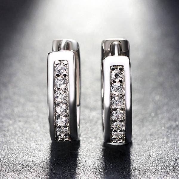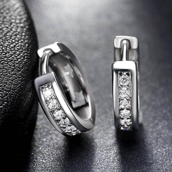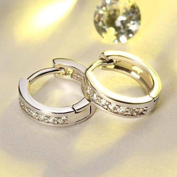 When a most subtle earring is needed these gorgeous huggie hoop earrings will fit the bill. Diamond-like AAA cubic zirconias are channel set in platinum plating. Designed to "hug" the earlobe they do not dangle, yet are sparkly and glamorous enough for evening. These 14mm hoops are suitable for young girls. They are so versatile, you will choose them again and again for a simply glint of sparkle.