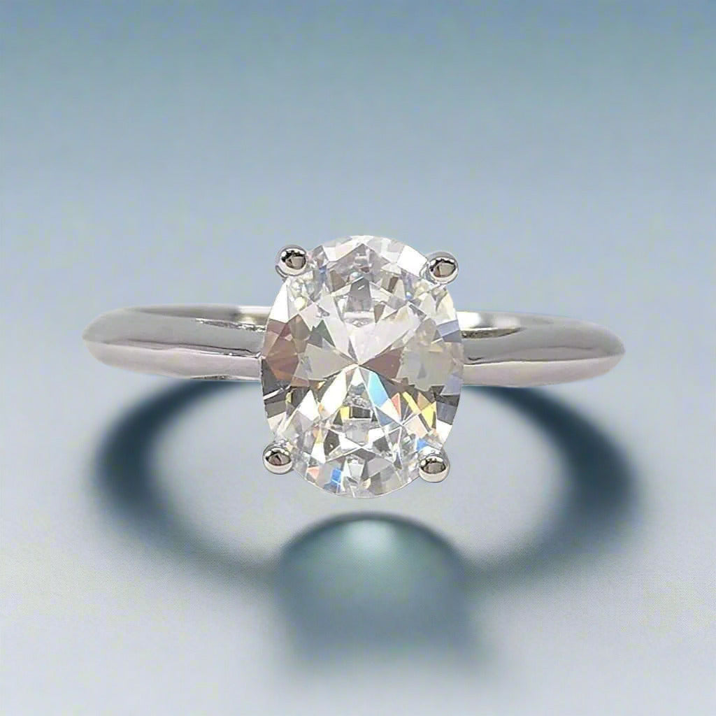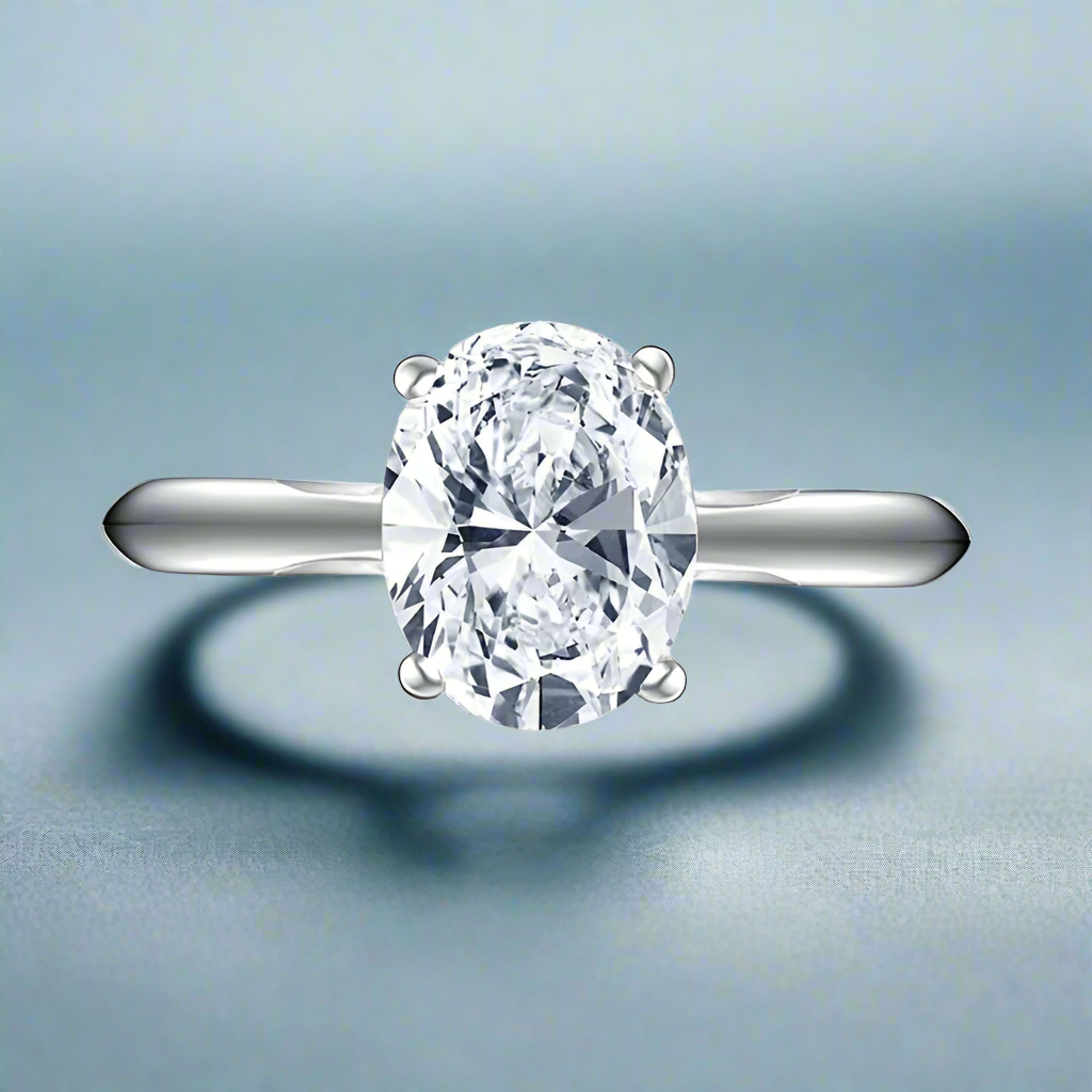 A masterpiece of understated luxury, the Nia 2 Carat OB Simulated Diamond dazzles with its classic oval cut. Flawlessly crafted with IF Clarity and a D-E Color Grade, each facet reflects a spectacular play of light and fire, making it truly unforgettable. 💎