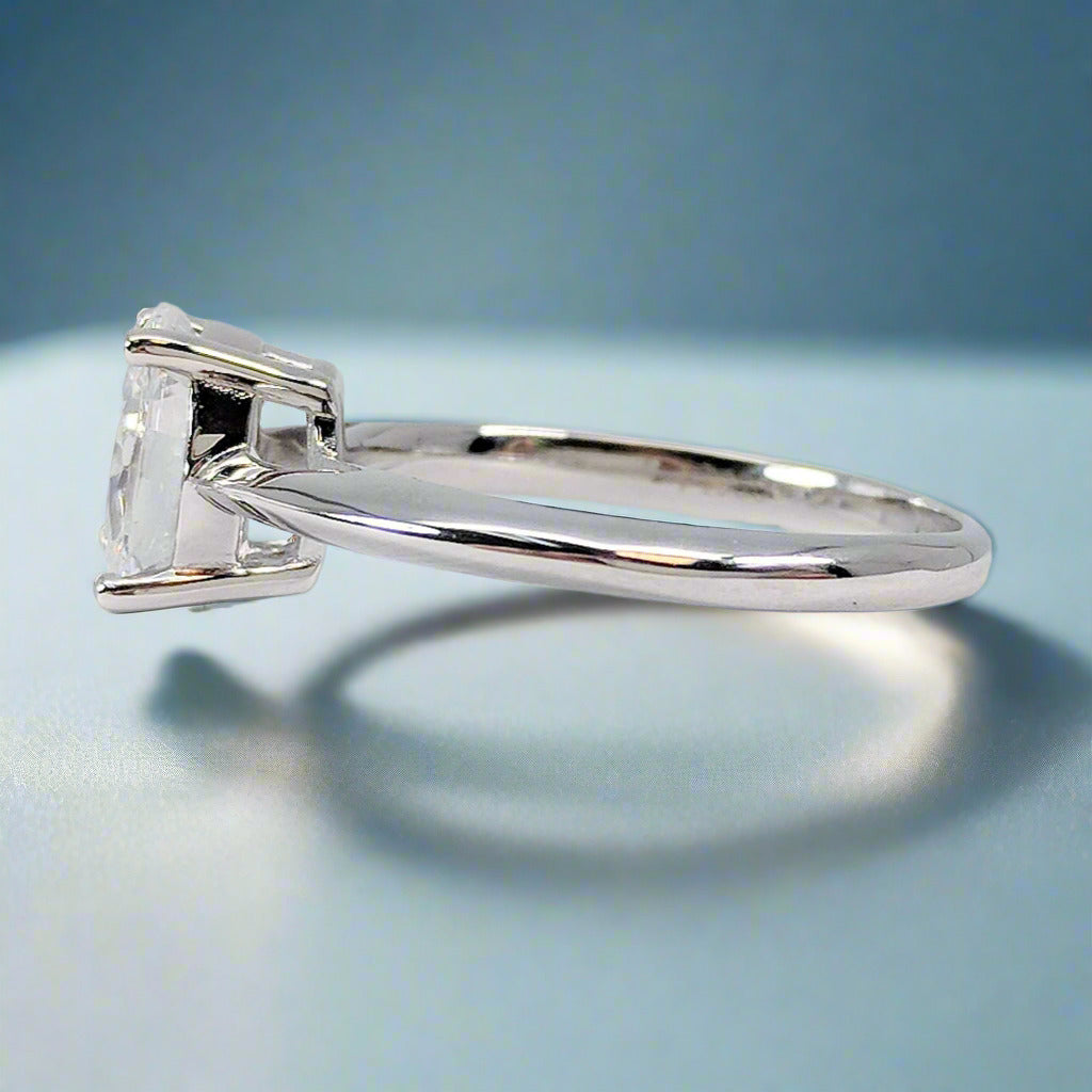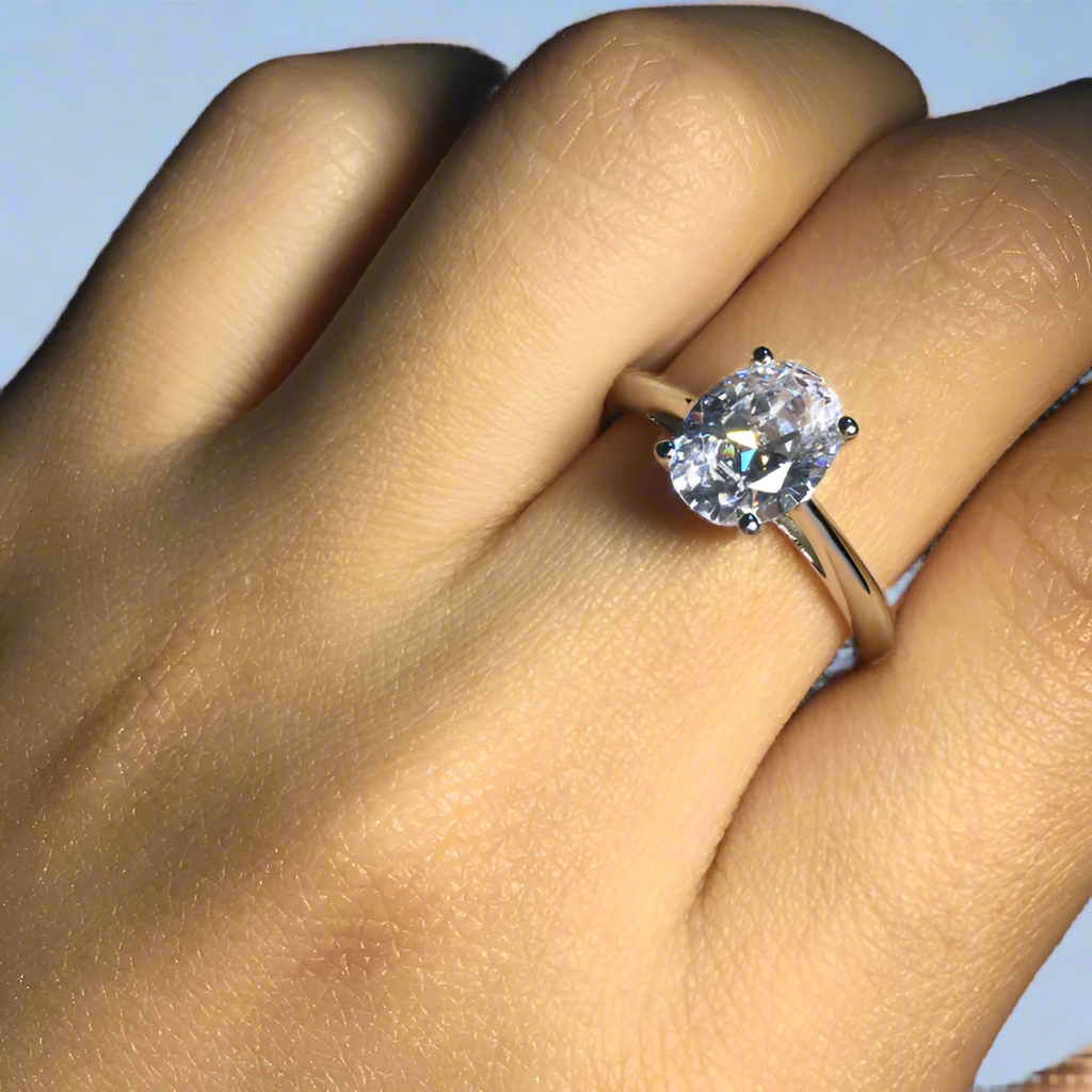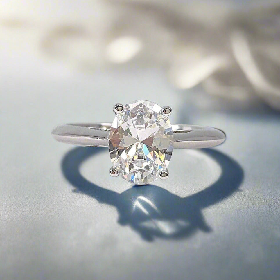 Set in a gleaming platinum-plated cathedral band, the Nia ring exudes grace. The minimalist band allows the radiant oval-cut center stone to shine with unparalleled brilliance. Crafted with the finest platinum plating over solid 925 sterling silver, its beauty is as enduring as it is breathtaking. ✨