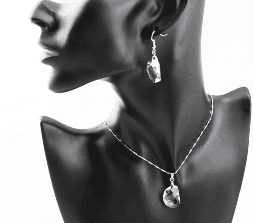 This natural shaped Austrian crystal stone dangles from a shiny silver chain with alternating twisted and straight bar links for added texture and interest. Multiple facets catch the light with every turn. Glitzy and glamorous! Wear it, princess! Make a statement. Matching Princess Drop Austrian Crystal Earrings also available.