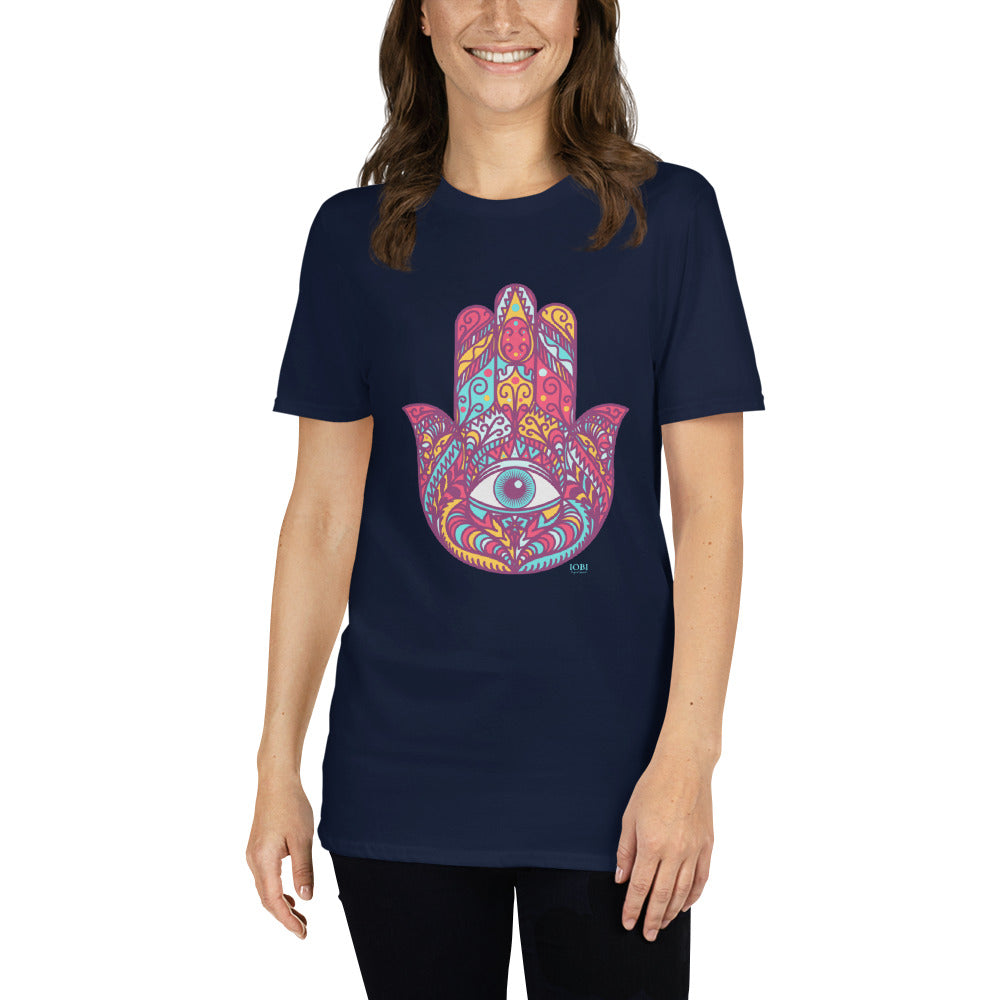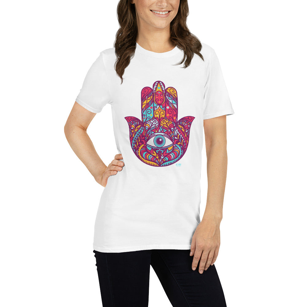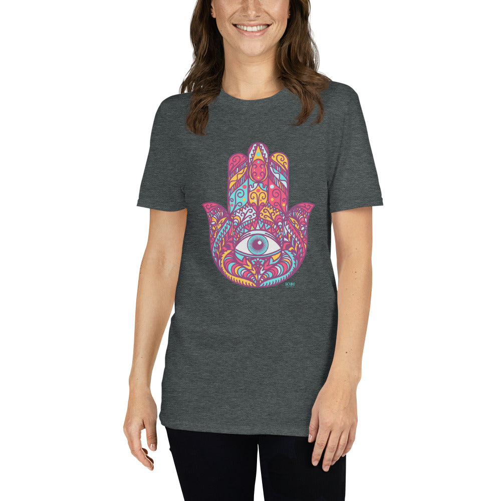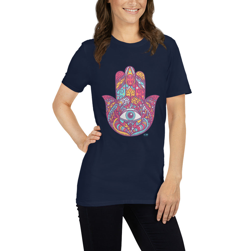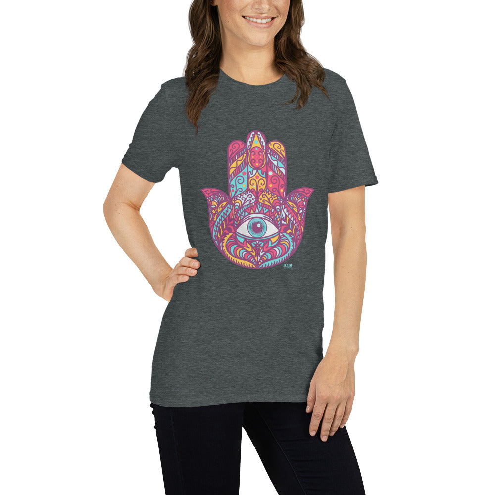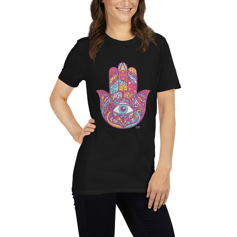 • Short-Sleeve Women Soft T-Shirt Red Hamsa Design by IOBI Original Apparel