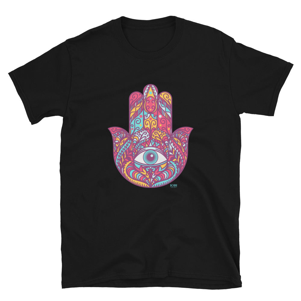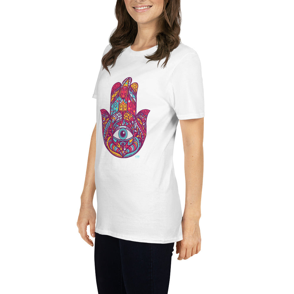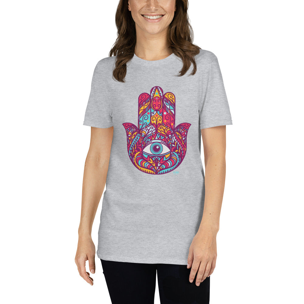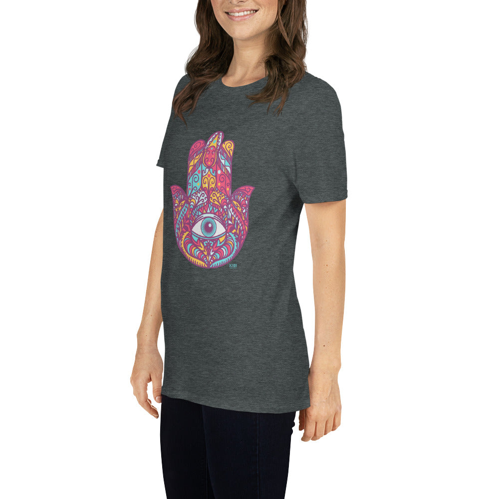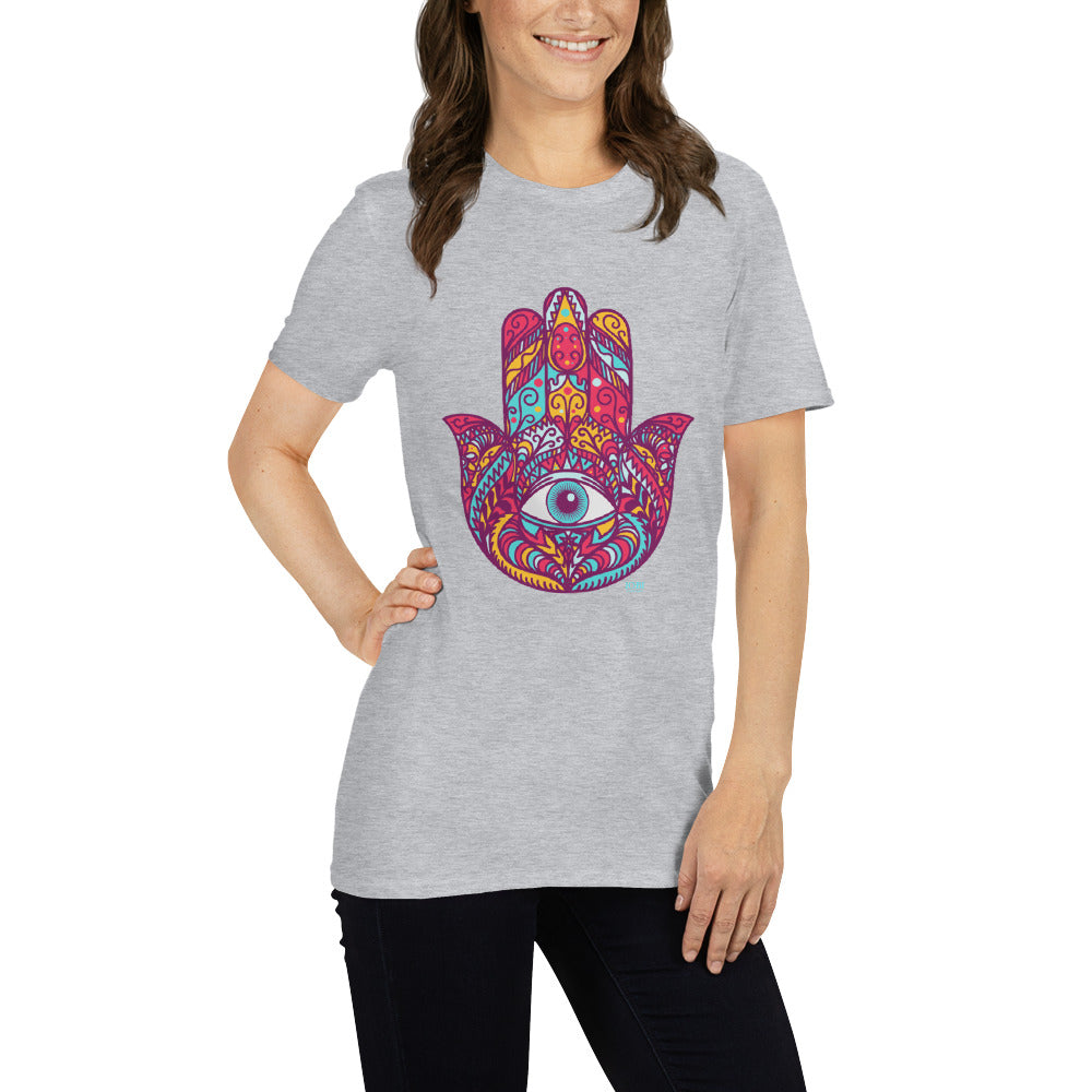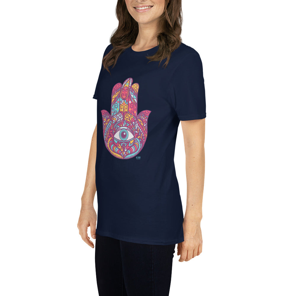 • Short-Sleeve Women Soft T-Shirt Red Hamsa Design by IOBI Original Apparel
