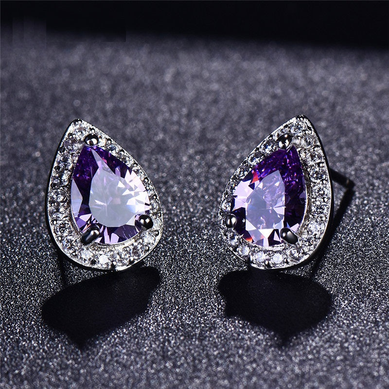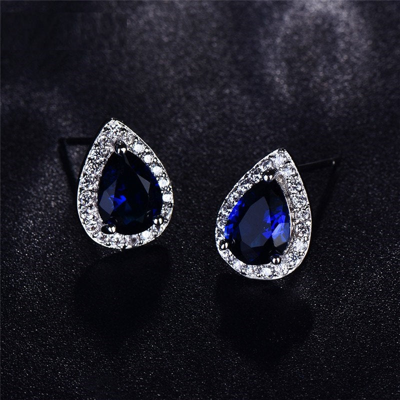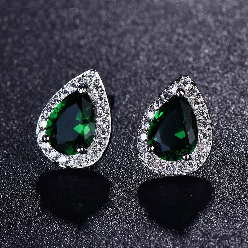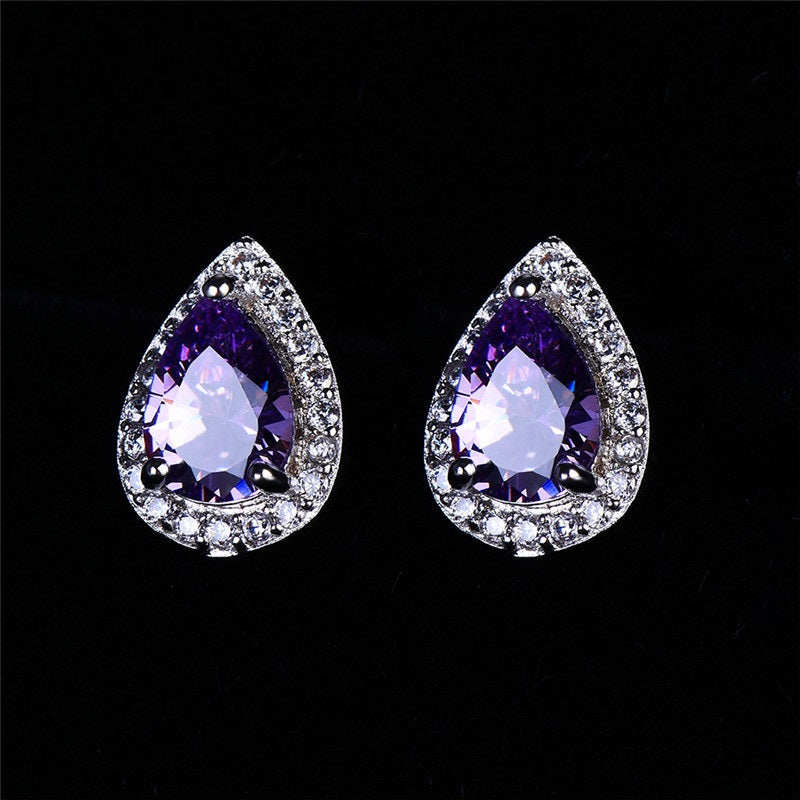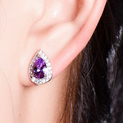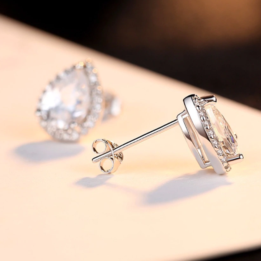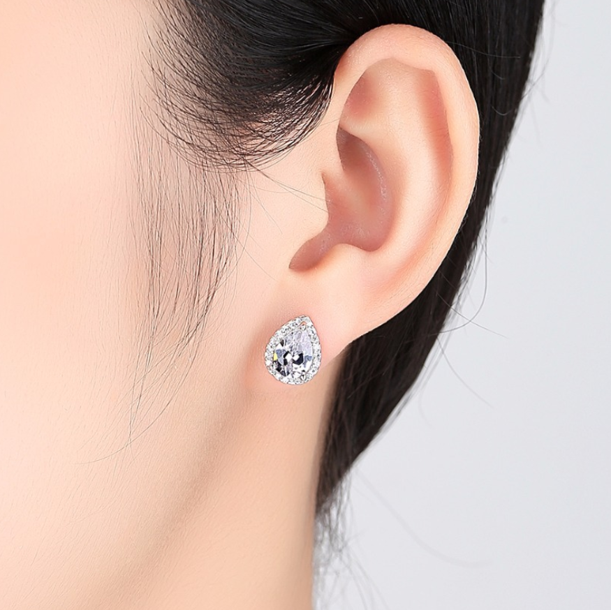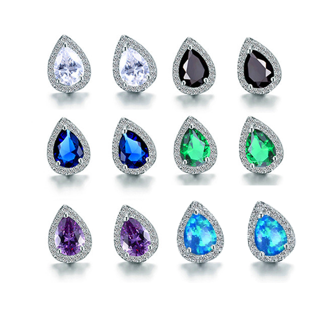 A stunning pear-shaped zirconia is surrounded by a brilliant white halo. Available in a myriad of colors, get one for each ensemble! Perfect for prom, wedding or a night on the town when only the most eye-catching jewels will do!
