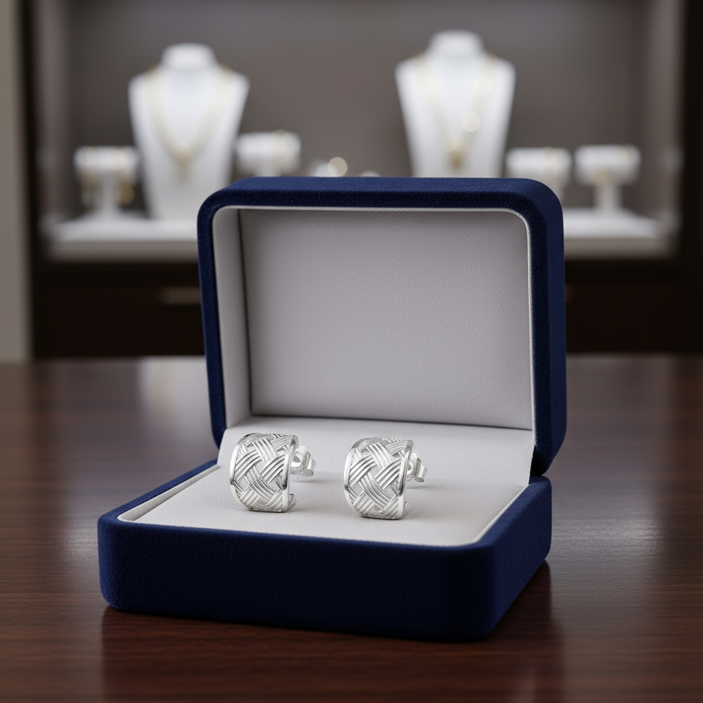 Enhance your look with these elegant handmade stud earrings for women. Crafted from solid 925 sterling silver and plated in premium 14K yellow gold or white gold, these earrings feature a unique curved weave design, combining modern style with timeless elegance. Perfect for any occasion, they are a versatile addition to your jewelry collection and arrive ready for gifting.