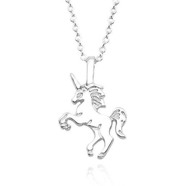 Everyone loves the mystique of unicorns! This prancing wonder is elegant in silver tones. It's a fun accent necklace. Features a 20 inch chain, it is perfect for young and old. A fabulous gift for a fantasy dreamer.