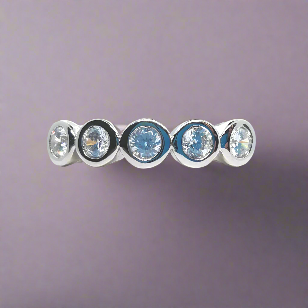 Shining with the brilliance of the night sky, Stella features five flawless OB Simulated Diamonds with a Clarity Rating: IF and the Color Grade D-E. Expertly cut and polished with the utmost precision producing facets that emanate the most exceptional color and fire.