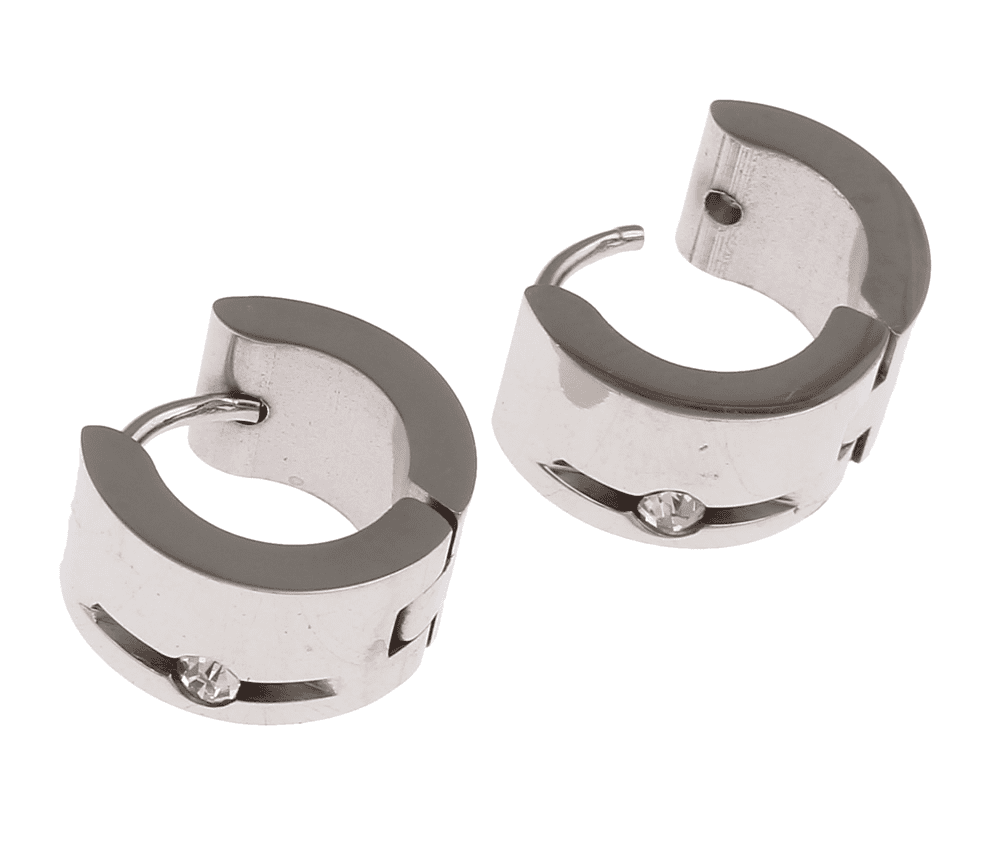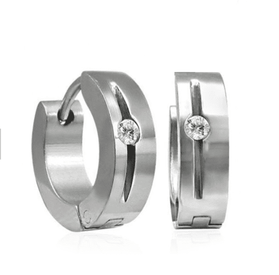 The hoop features highly polished stainless steel with a single CZ stone inset in a channel. These earrings are durable and hypoallergenic while being light and comfortable. No tarnish or irritation! Perfect for him or her.
