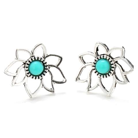 Simple but elegant with a bit of vintage flair. The petals of the lotus flower are accentuated with patina and a bright pop of turquoise at the center. Add it to a chic ensemble for a pop of boho style.