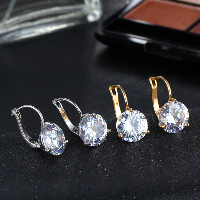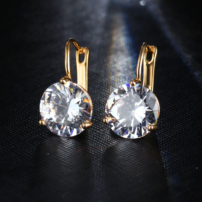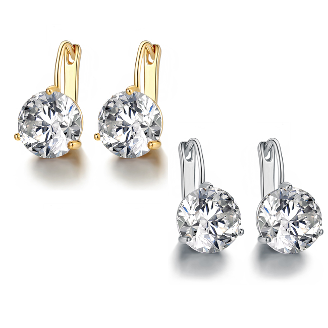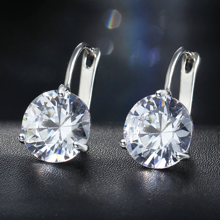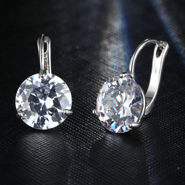 A favorite solitaire setting, the three prongs resemble a martini glass creating an elegant understated look. This setting allows the incredible 12mm 6.8ct round cut stone to burst with color and fire. These earrings are the perfect combination of luxury and glamor, with the security and comfort of a clip-back closure.