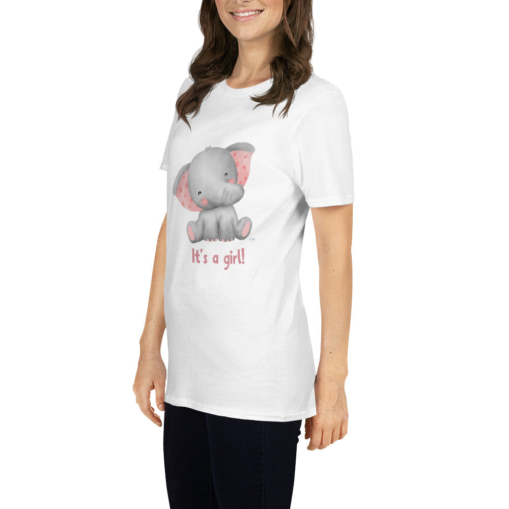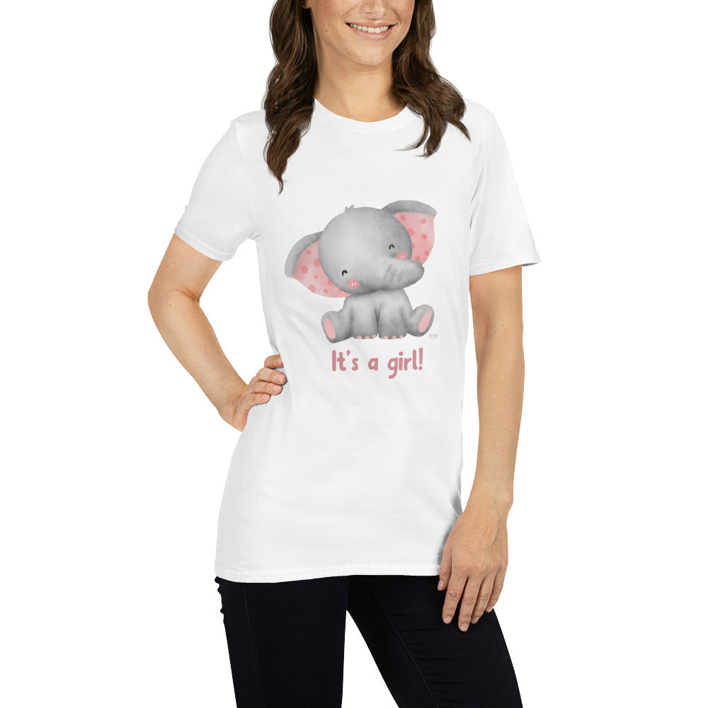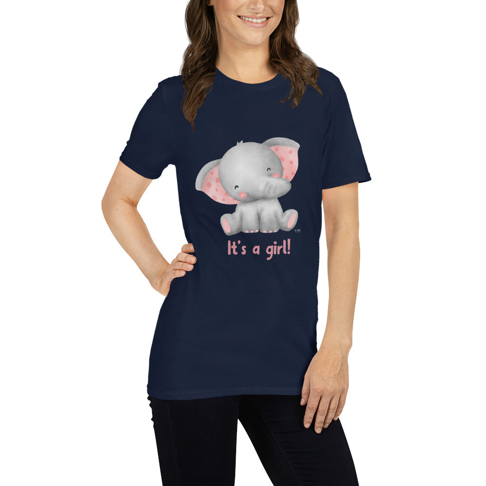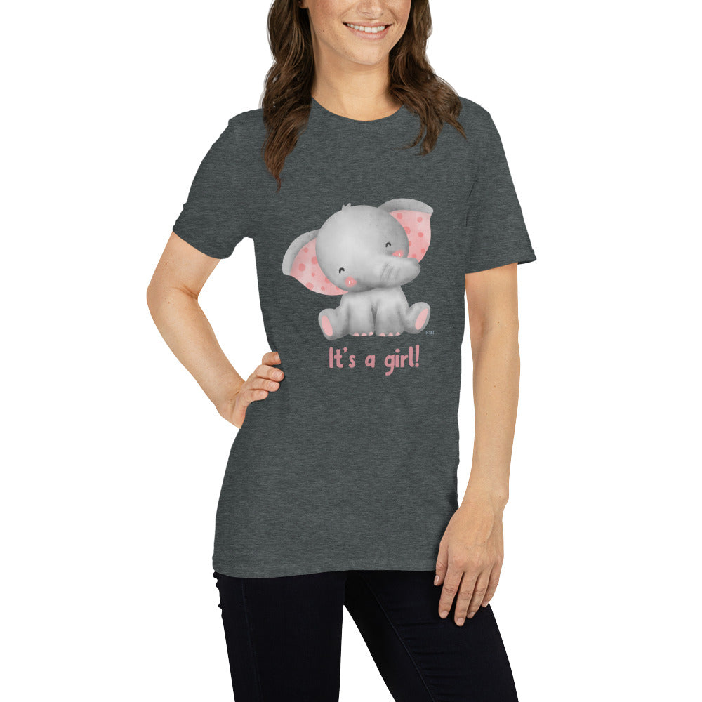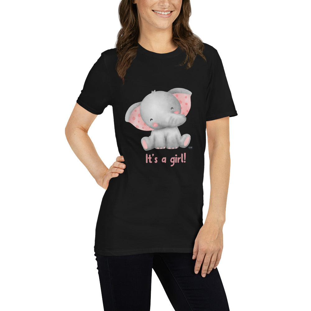 • Short-Sleeve Women Soft T-Shirt It's A Girl Baby Elephant Design by IOBI Original Apparel