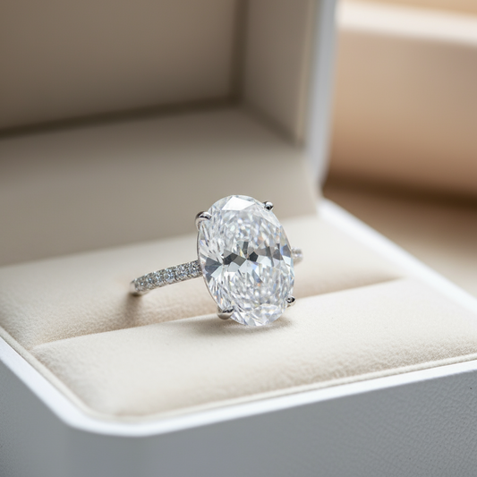 Charlaine En Bleu 3.5CTW Oval and Pavé Band OB Simulated Diamond Ring for Women Bridal Engagement Wedding Anniversary Gift