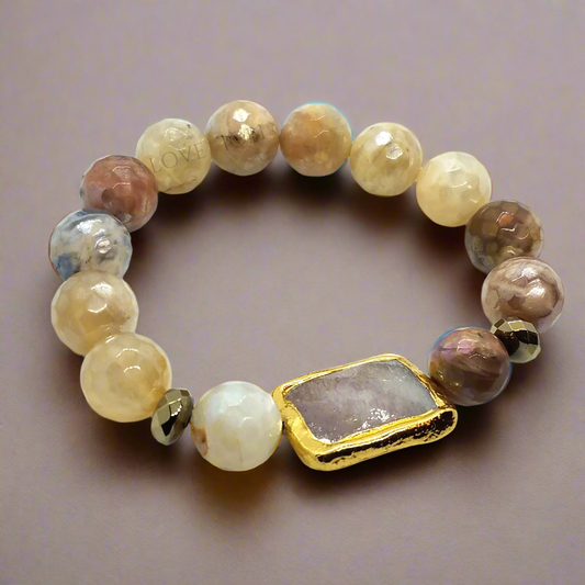 Frosted Quartz Labradorite Stretch Bead Bracelet for Women